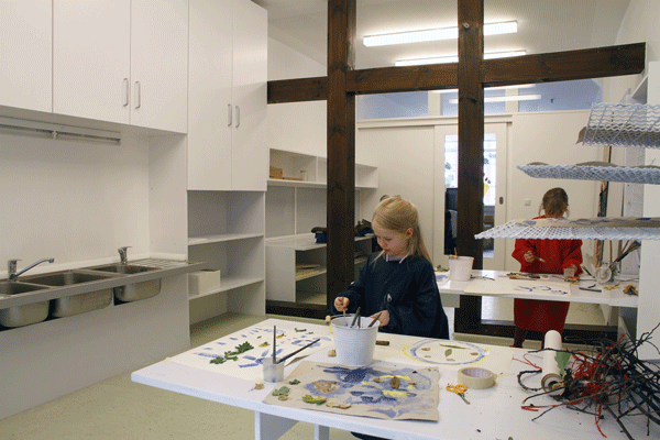 In einem bisher ungenutzten Teil des Fachwerkhauses im Kindergarten haben wir ein Kinderkunstatelier mit Werkstattbereich gebaut und eingerichtet.
