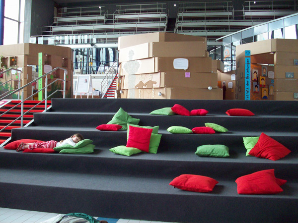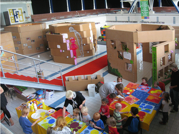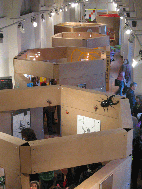 Acht Räume aus flexiblen Pappwänden und -elementen regen Kinder an, den Wert von Vielfalt zwischen Menschen, in der Natur und bei Dingen zu erforschen. Die Ausstellung wurde gemeinsam von PädagogInnen, KünstlerInnen, DesignerInnen und Kindern gestaltet.